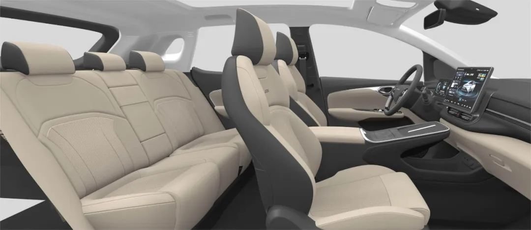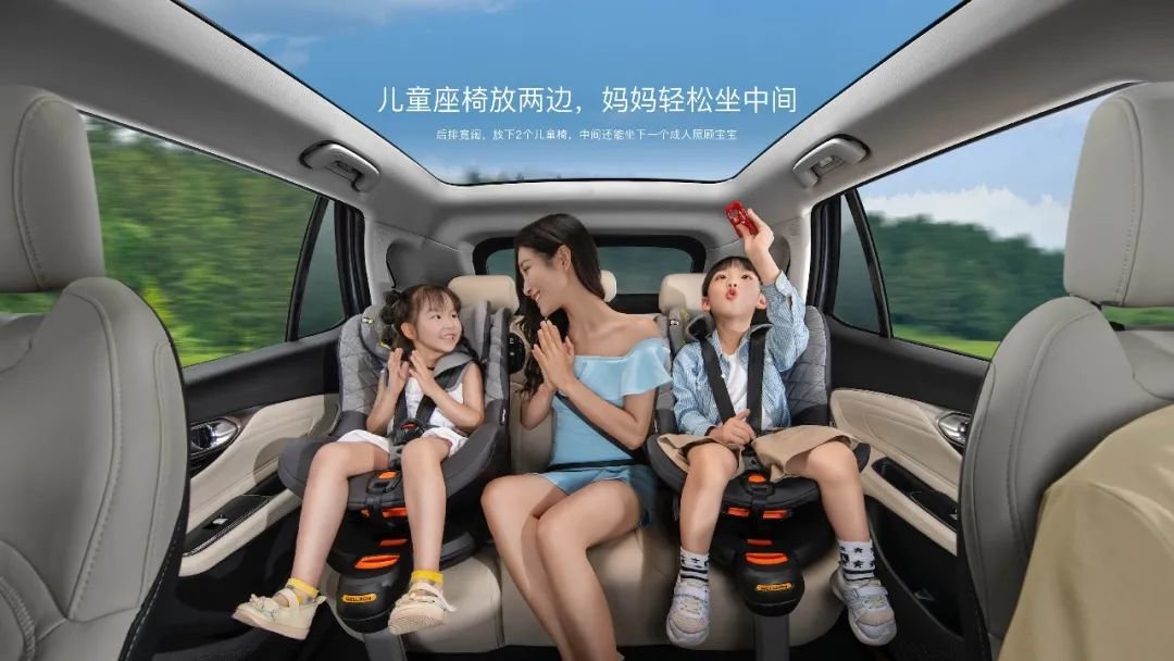 新车不仅可以同时在后排放置两张儿童安全座椅,同时也是同价位唯一一款提供了三排7座的纯电SUV。