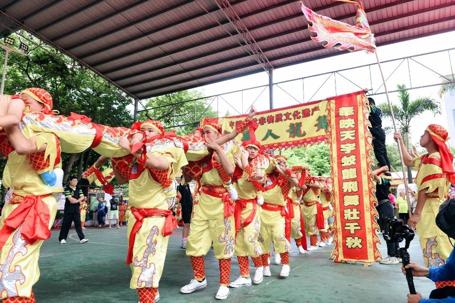 除了河上百龙巡游,河岸上的非遗表演与“龙”的巡游也异常精彩。醒狮、北水柜色、高赞八音锣鼓等非遗表演轮番上演,人龙舞、男女国标龙、润苑金银童子龙、板凳龙、香火龙、传统大龙等各式各样“神龙”巡游龙潭。