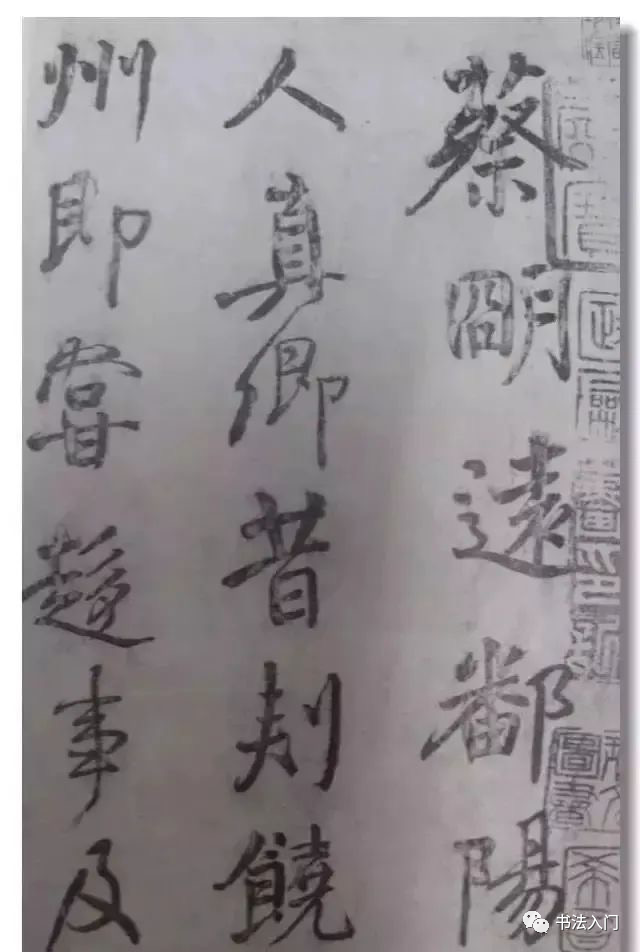 这个字帖看了之后,还有颜真卿的这一个字帖。我们对颜真卿的字帖大多数印象是碑刻,结构很森严,笔画很严谨。其实,颜真卿的书法还是有笔意的。你看这幅,跟我们印象中的碑刻不一样。这一张书法还是很生动的,尤其在刻碑之前,他的用笔没有那么多棱角没有那么多死板的东西。