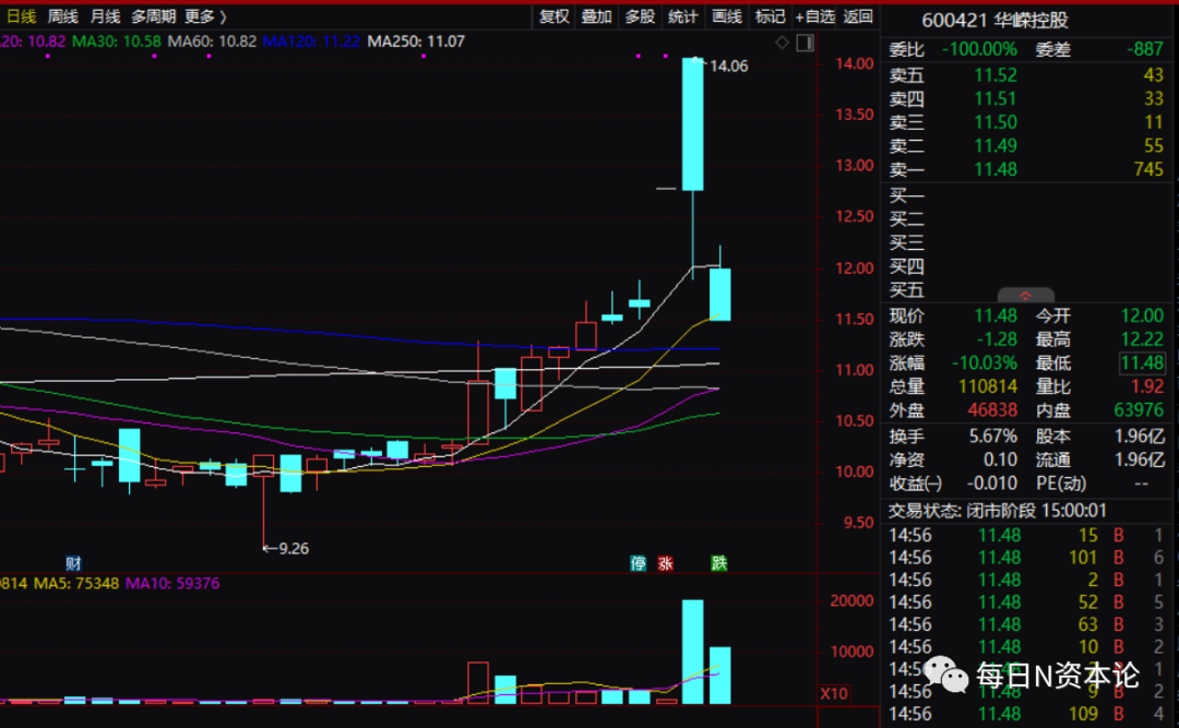 端午节前,湖北华嵘控股股份有限公司(下称,华嵘控股)股价大幅低开,然后持续下行直至跌停。截至当日收盘,其股价为11.48元,下跌10.03%,总市值22.45亿元。