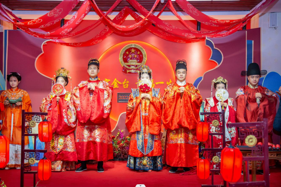聚力打造“金鹊桥”婚恋交友平台。组建“金鹊桥”线上线下交友平台,会员人数已达300余人,以灵活、常态化牵红线、搭鹊桥的方式,助“脱单”、结良缘。并多次策划实施各类线下相亲活动,通过活动引导青年人树立“风雨同舟、相濡以沫、责任担当、互敬互爱”的婚姻理念,为今后幸福健康的婚姻家庭生活打下良好基础。创新结婚颁证服务。邀请省市区领导、人大代表、政协委员、社会名人、创业精英、金婚夫妇成立特邀颁证师团队定期为新人颁发结婚证,并推出多元化点单式颁证服务以供新人选择。2022年8月4日,是中国传统七夕佳节,宝鸡市金台区民政局婚姻登记处举办“相约七夕▪情定金台”汉礼颁证活动,在弘扬传统文化的同时引导新人们树立“婚礼新办、喜事简办”的新婚姻理念,让“节约办大事,文明树新风”的观念逐渐深入人心。