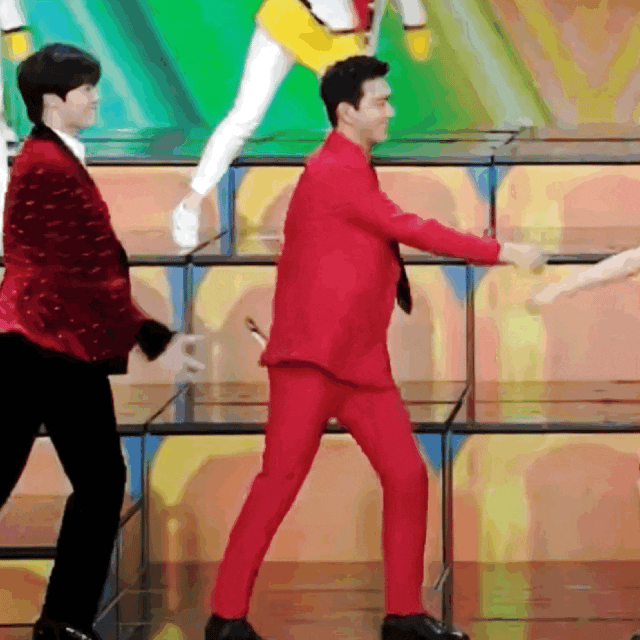 不过孙莉和关晓彤跳得奇怪归奇怪,但还不至于到辣眼睛的地步。比她俩更荒谬的,是海澜之家Twins杜淳、印小天——