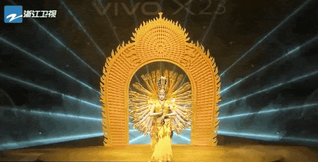 还有致敬经典的千手观音,迷之坚定的眼神搭配上用尽全身力气的双臂,我觉得bgm应该换成《精忠报国》。