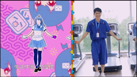 看得出来节目组考虑他水平有限没有设计太难的动作,但仔细看你会惊讶的发现,就这么简单的一个广场舞开场热身动作,毛不易老师已经开始顺拐了。