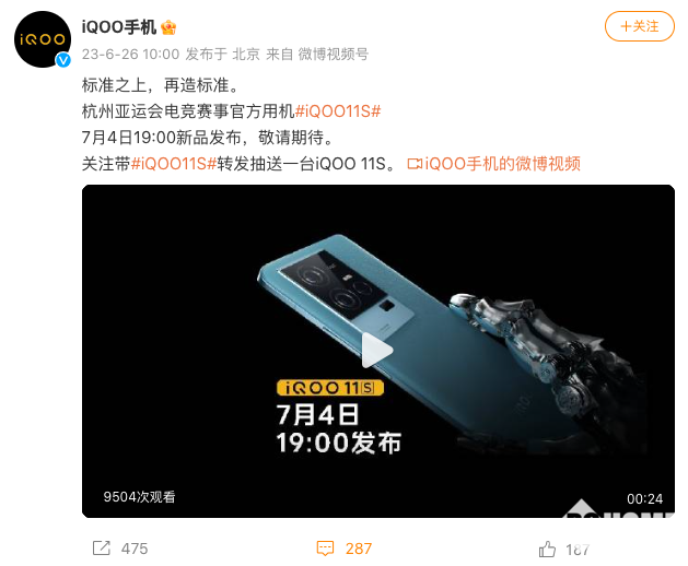 此前,入选杭州亚运会电子竞技(王者荣耀亚运版本项目)国家集训队候选人员名单的花海手持iQOO 11S进行训练。iQOO产品经理@Violet_宋在社交媒体表示,“很多人问我S为什么是大写,因为S代表的是SUPER!标准之上,再造标准。另外,花海手上的这个是专为亚运而生的全新配色,与我同款。加油亚运!加油花海!”。