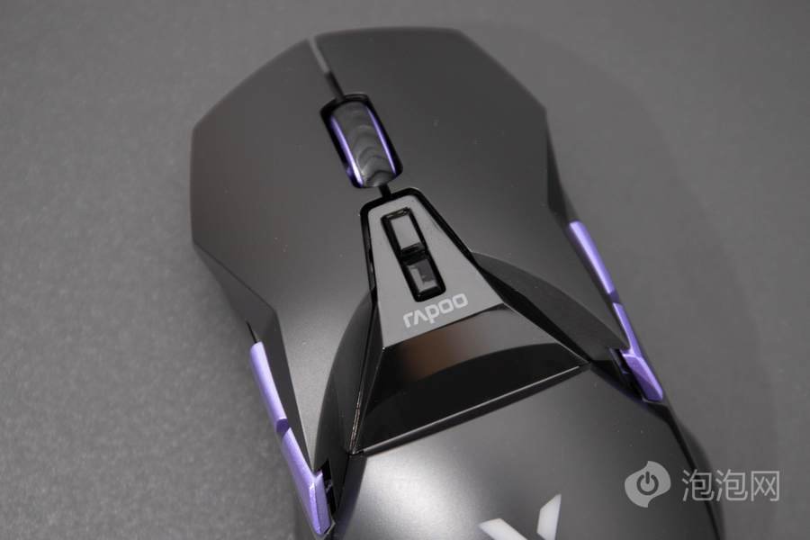 在鼠标顶面的中部,雷柏VT950 Pro屏显双模无线游戏鼠标配备了一块客制化OLED屏幕,可以显示鼠标相关参数或者让用户自行设置内容进行显示。而在鼠标的掌托部分,雷柏VT950 Pro屏显双模无线游戏鼠标加入了雷柏的透光LOGO,内具有1680万色的LED灯光,可提供多种不同的灯光方案。这客制化的OLED屏幕以及多彩的灯光效果,结合鲜明特点的外观,为用户打造个性化游戏装备提供了全新的解决方案。