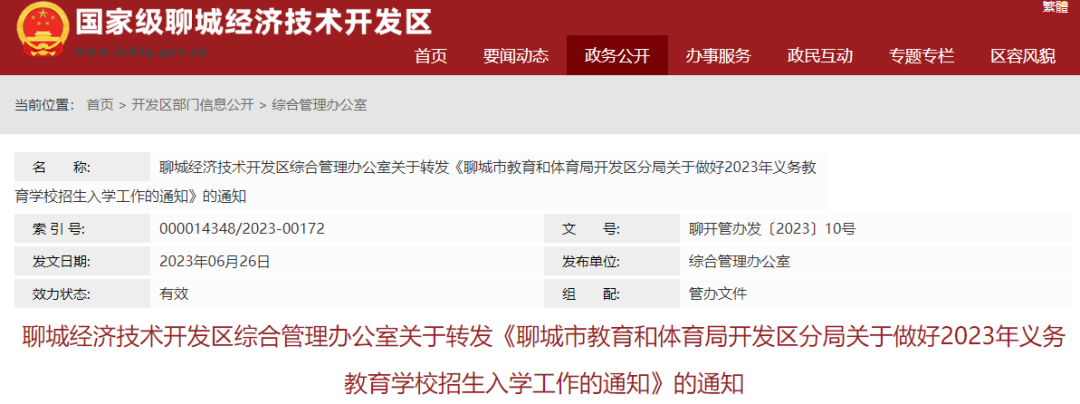 《聊城市教育和体育局开发区分局关于做好2023年义务教育学校招生入学工作的通知》已经管委会研究同意,现转发给你们,请认真贯彻执行。