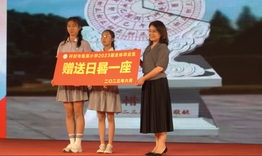 六年来,在学校留下了太多温暖而美好的回忆。在即将告别之际,毕业班的学生精心准备了刻有惜时的“日晷”,送给培育他们六年的母校。六年级家长为学校和六年级老师送上锦旗,以此来感恩学校和各位老师的培养。