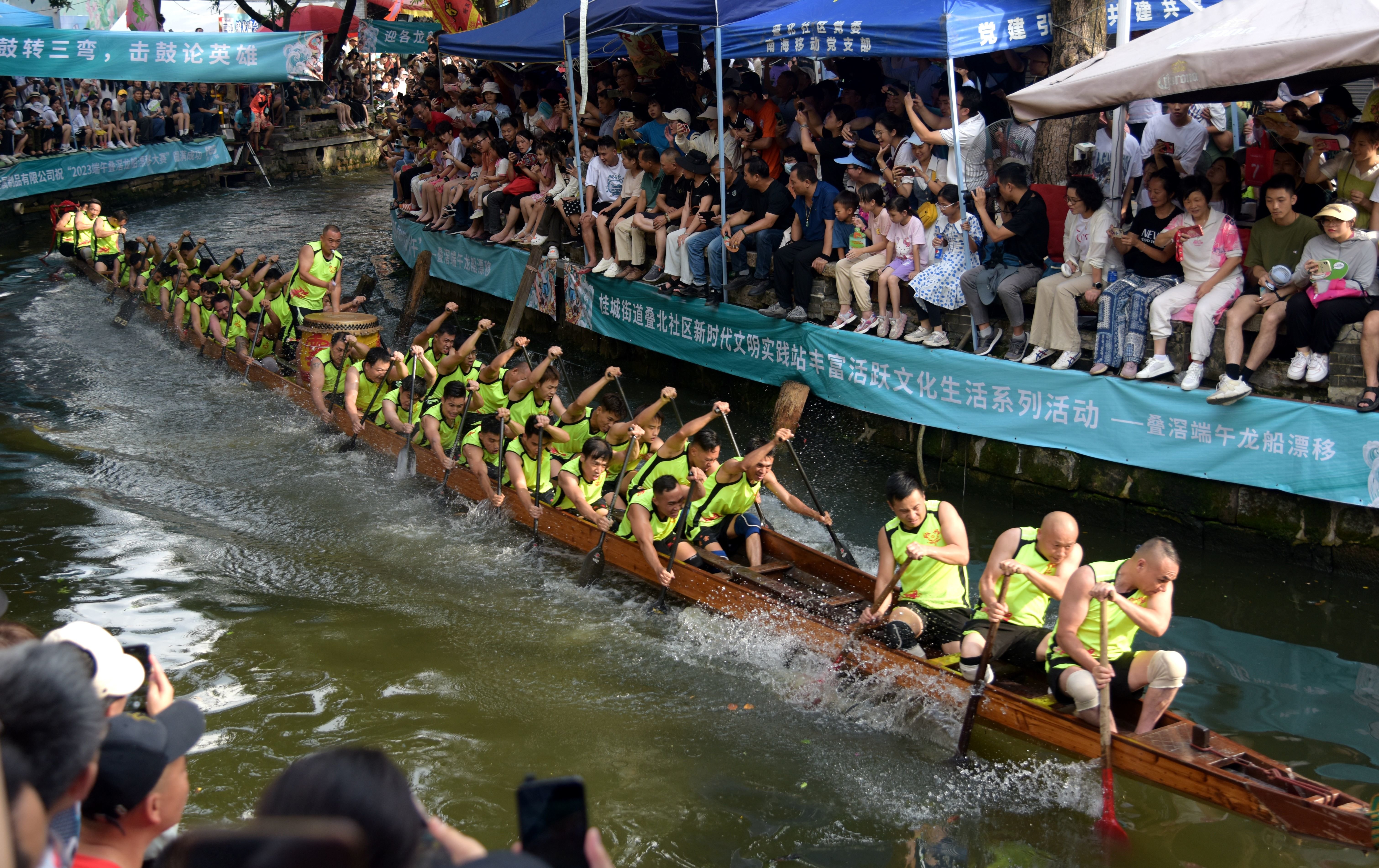 一声哨响,艘艘龙舟犹如离弦之箭,在蜿蜒曲折的河涌上踏着鼓点劈波斩浪、漂移冲刺。“2分37秒23!”经过激烈角逐,叠北庆云龙舟队以刷新记录的佳绩一举夺魁。