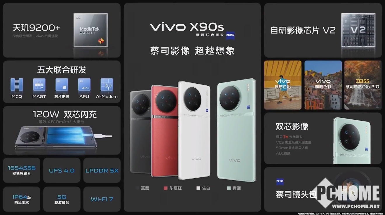 其他方面,vivo X90s与vivo X90相同,搭载了蔡司T*光学镜头、双芯BOOST电竞体验、超视网膜护眼屏和120W双芯闪充、IP64级防尘防水等旗舰级配置,可以给消费者提供全面出众的体验。