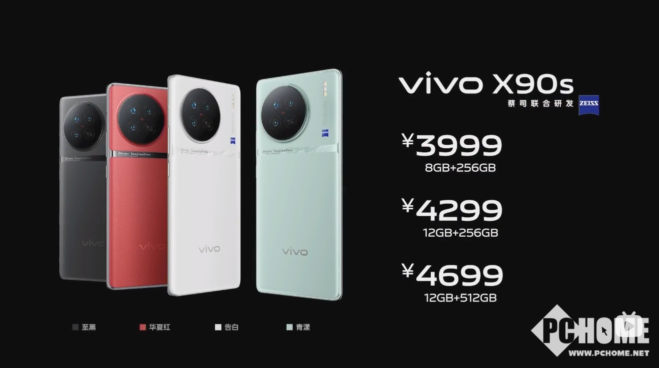 价格方面,vivo X90s提供华夏红(素皮)、告白、至黑、青漾四种配色,拥有8GB+256GB、12GB+256GB、12GB+512GB三种存储配置,售价分别为3999元、4299元、4699元,将于2023年6月30日全面开售。