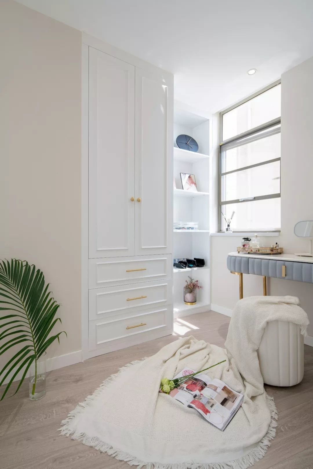 ▲ 衣帽间,白色与金色的组合高级而温柔,靠窗的位置留给梳妆台,精致度满分。