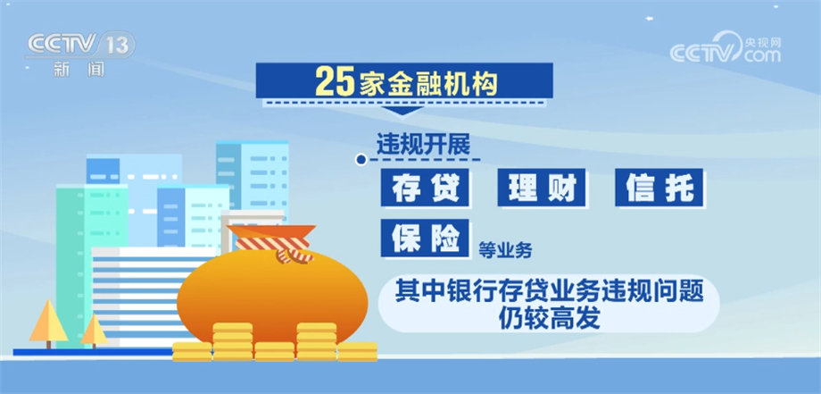 25家金融机构违规开展存贷、理财、信托、保险等业务,其中银行存贷业务违规问题仍较高发。