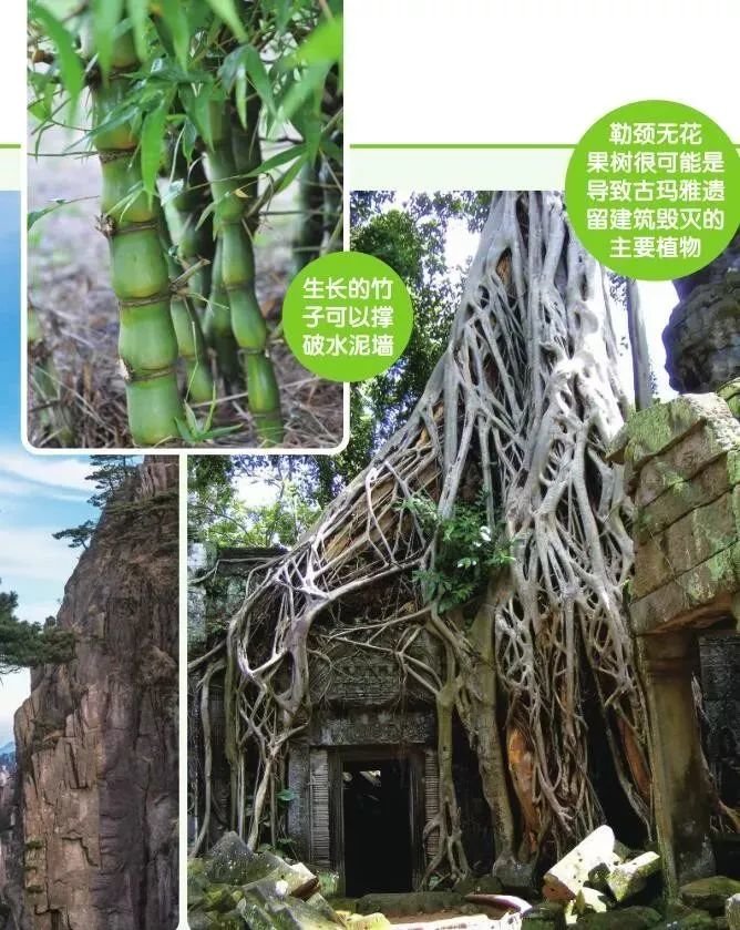 如果说有一种树非常适合捣蛋,那非“勒颈无花果树”莫属。不论它身处何方,它的强大根系蔓延在石块之间,都会逐渐将巨大的垂直墙壁变成碎石。根据著名的新热带植物学家的说法,勒颈无花果树很可能是导致中美洲古玛雅遗留建筑毁灭的主要植物;在18世纪和19世纪,英法两国在战略要地加勒比海岛屿上修建的密闭而结实的军事要塞,竟然也被勒颈无花果树摧毁。所以,人们必须不断地与这种自然的植物入侵作斗争。