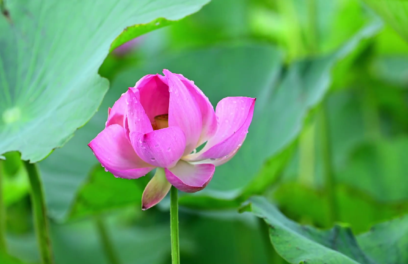 经过连续两天的雨水,6月26日,枣庄祖源公园的荷花挂上了晶莹的水滴,在密密匝匝的荷叶中,亭亭玉立。片片花瓣随风轻轻舞动,更显袅娜多姿、十分赏心悦目。花朵在阳光的照耀下,更加通透。(来源:闪电新闻 李永文 李莹 姜兴民)