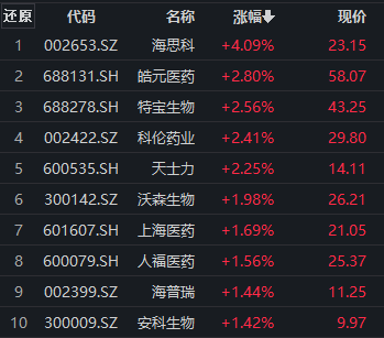 创新药板块早盘表现活跃,中证创新药产业指数(931152)成分股多数走高。截至午间收盘,海思科涨超4%,皓元医药、特宝生物、科伦药业、天士力涨逾2%。