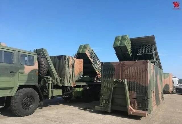早在2016年珠海航展上,我国展出了一款集装箱式火箭炮,将SR5模块化火箭弹发射装置和相应的供电、通信、射控等单元集成在一个集装箱内。发射装置可以为两个四联装300毫米火箭炮或者两个20联装122毫米火箭炮,也可以两个口径火箭弹混装。集装箱版SR5火箭炮采用的是钩臂运输车使用的方仓集装箱,这种运输方式在卸载集装箱时不需要起重设备,钩臂运输车的起重臂就可以将其装车或者卸载,拥有很高的灵活性。SR5模块化火箭炮的集装箱版本不展开时就和普通的集装箱一样,作战时发射架连同集装箱顶盖向上倾斜,再打开尾部的盖板排烟,就可快速发射火箭弹打击敌人。
