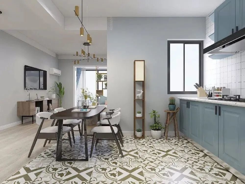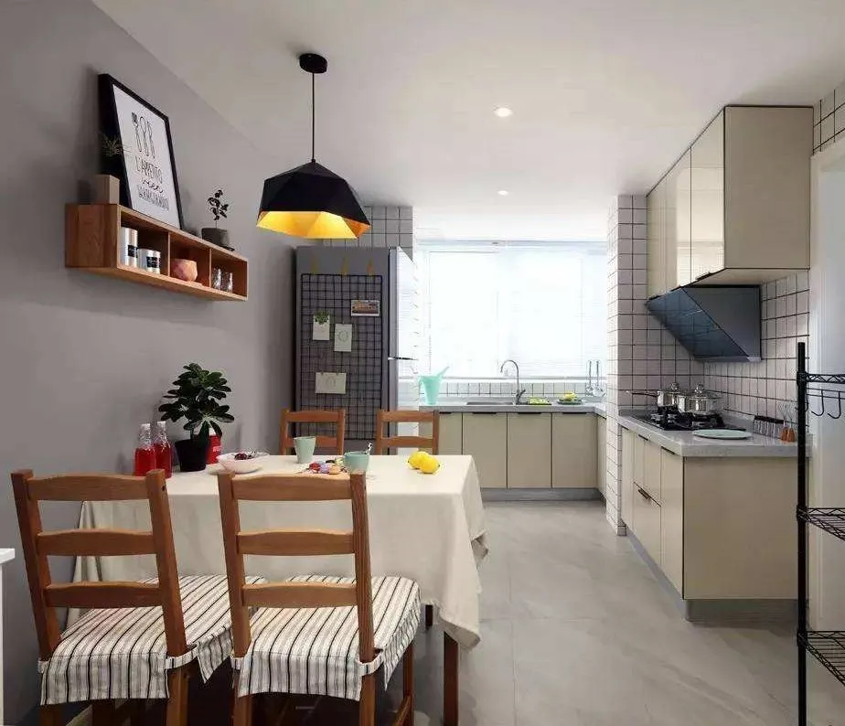 1.考虑活动空间及安全问题,餐桌与橱柜灶台之间至少留1.2m的距离;