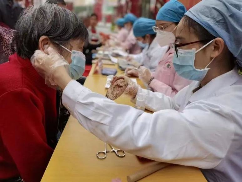 除了在站点的日常开诊引进新思路,在义诊中,桂城社卫也将艾灸、耳尖放血、穴位贴敷等中医理疗深入基层。