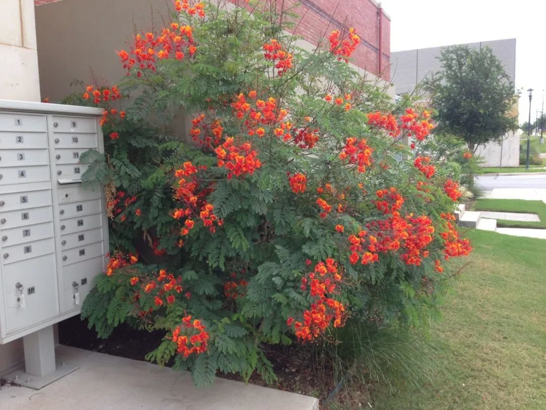 这是一种比较小众的景观花卉,它是属于灌木植物,要养在较大的花盆中,或者布置在院子里,它的植株可以长到1~3米高,叶子是比较翠绿的,叶片一串串的,看起来有点像凤凰花的叶子。