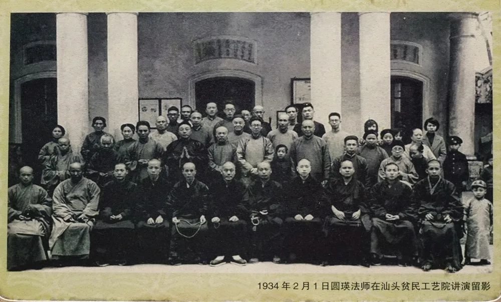 1934年2月1日圆瑛法师在汕头贫民工艺院讲演留影