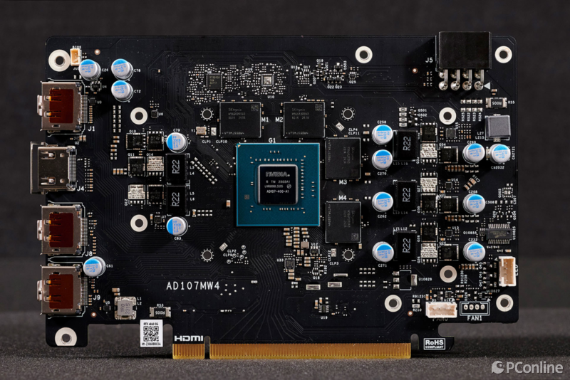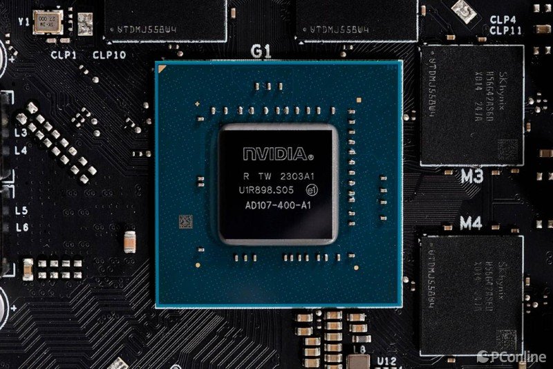 AD107-400核心,周边是4颗SK Hynix GDDR6显存颗粒