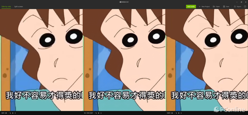 我们将本地的480P画质视频进行RTX VSR 4档渲染,从画面上看,开启了VSR技术后,右侧的渲染视频确实比左侧原生的视频要清晰许多,并且肉眼可见噪点的减少,观感上要明显好于原生的480P视频。