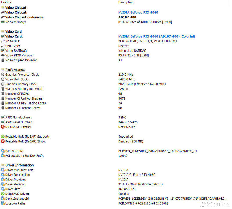 至于驱动方面我们直接使用上NVIDIA提供的536.20_gameready_win11_win10-dch_64bit_international测试驱动,不局限于Game Ready驱动与Studio驱动,并明确BIOS中的Resize BAR(Resizable BAR)功能开启,从而实现DLSS3技术。