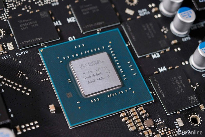 GeForce RTX 4060 8GB采用Ada Lovelace GPU架构核心的AD107,是目前NVIDIA桌面级显卡中最小的核心,其核心面积只有156mm2,比旁边的FCBGA封装的GDDR6显存颗粒(162mm2)面积更小。
