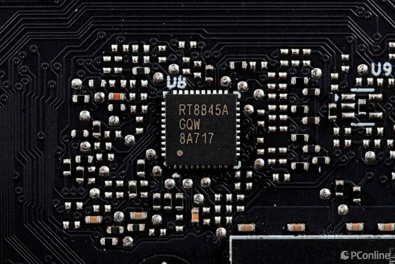 PWM控制芯片是常见的RT8845A,RICHTEK立锜科技出品的一款4相同步PWM控制芯片。