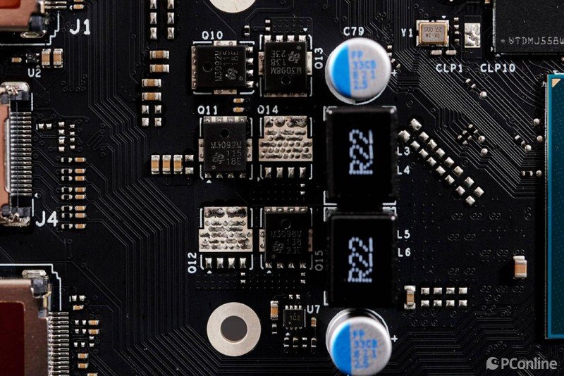 传统的上下桥Mosfet供电方案,4相核心供电+1相显存供电,主打的是成熟、稳定,以及更好地控制成本。上下桥均是由uPI SEMI出品,丝印分别是M3092M与M3098M