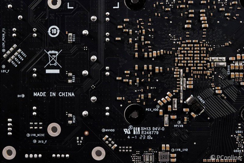 主要的电子零件都安放到PCB正面,那PCB背面就显得有些“空”。但不得不说的是,iGame显卡即使是Ultra系列的显卡,细节、做工仍是很到位,比普通的PCB做工与用料都要好些。
