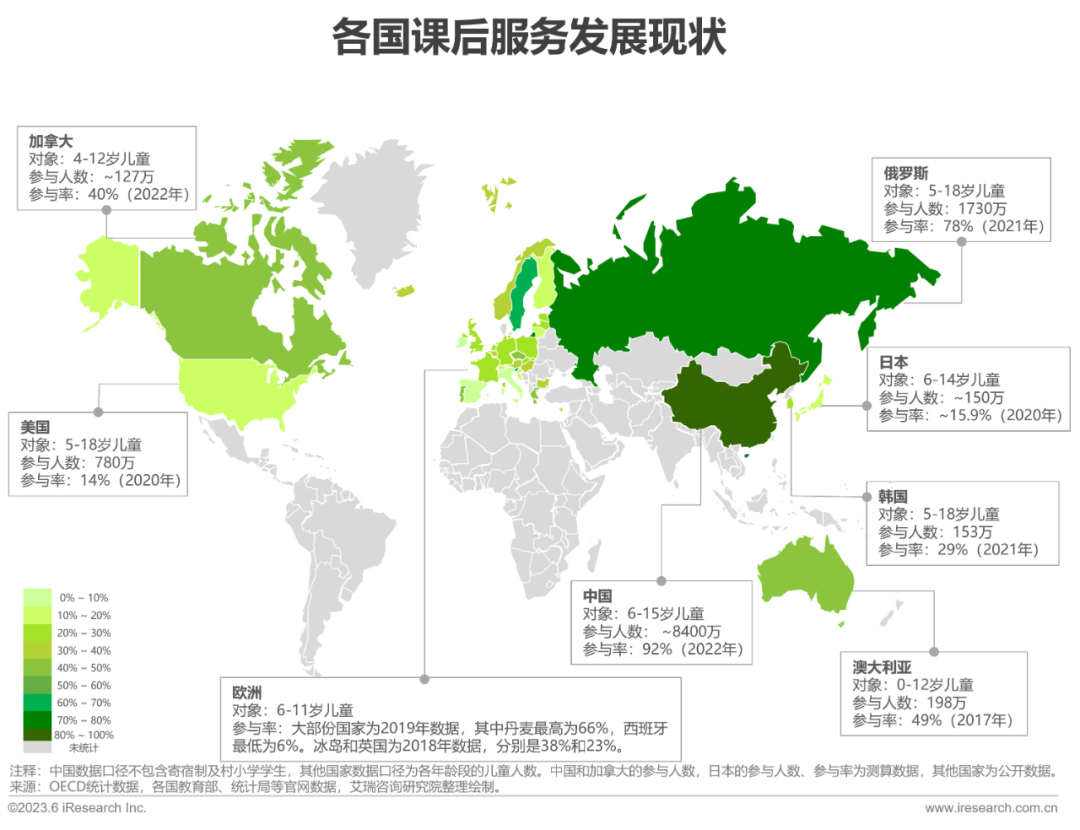 •从发展历程来看,美国、澳大利亚、瑞典起步早、体系较成熟,中国仍处于早期。从发展现状来看,各国的服务对象、参与率差异较大,中国、俄罗斯总体参与率较高。