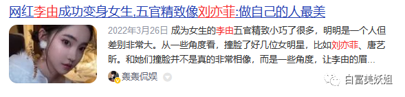 就是那个去变性的男网红,妖姐居然看到有人说变性后的他像“刘亦菲”??
