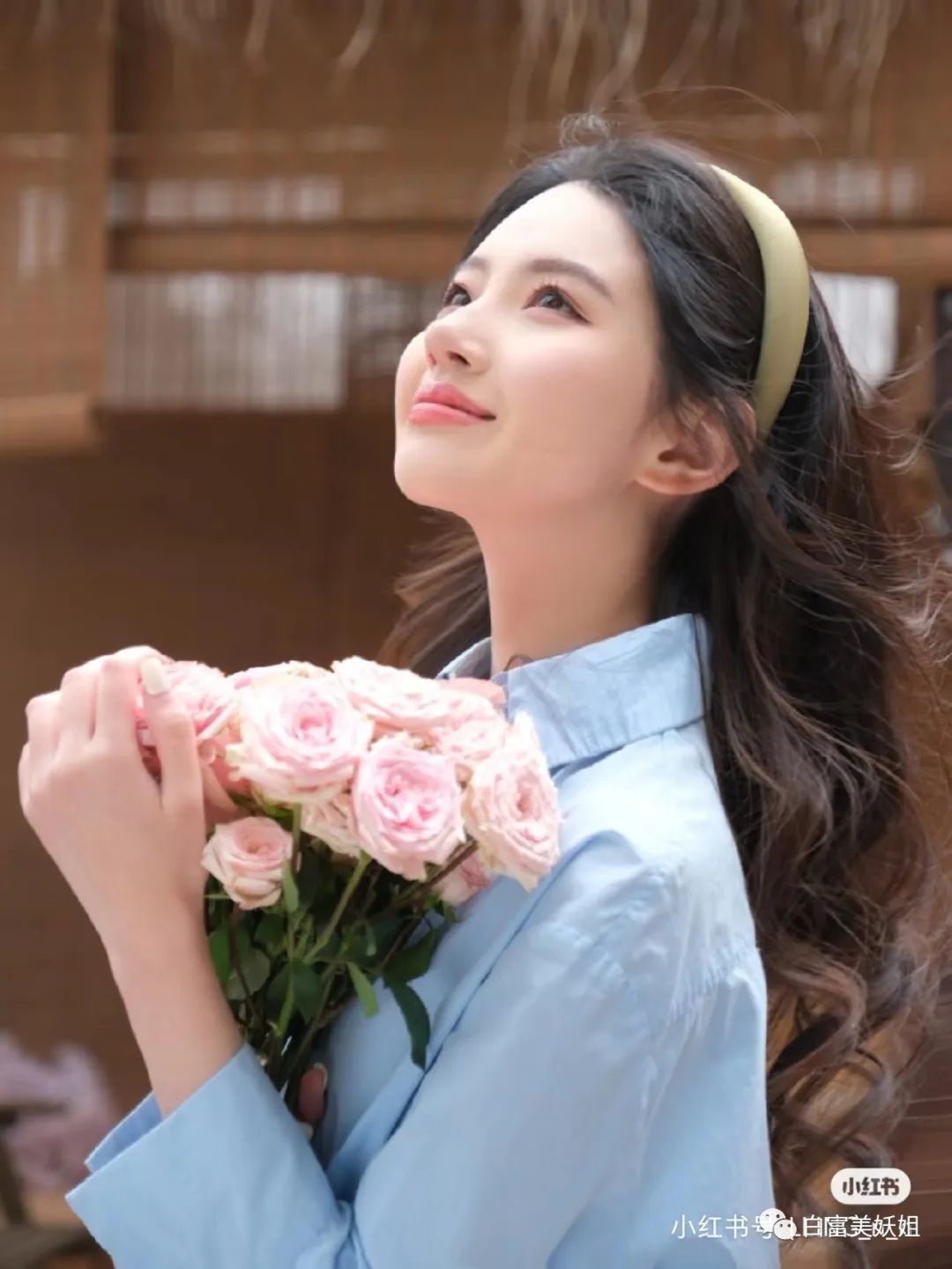 巧的是,她还拍过刘亦菲同款捧花照,