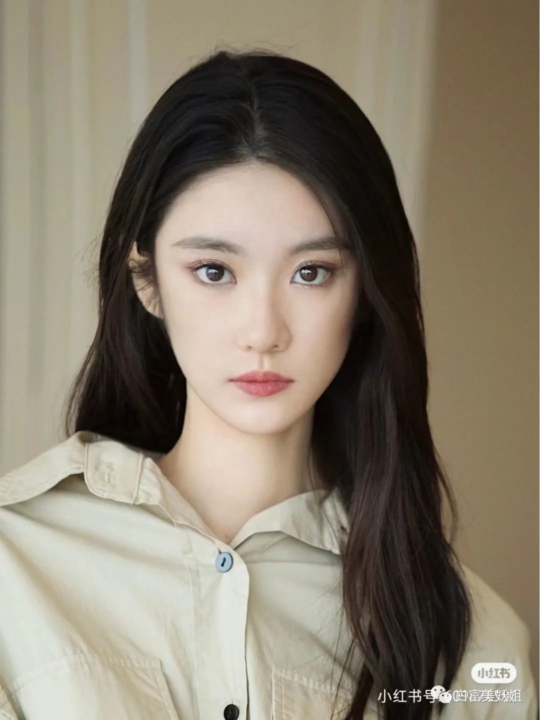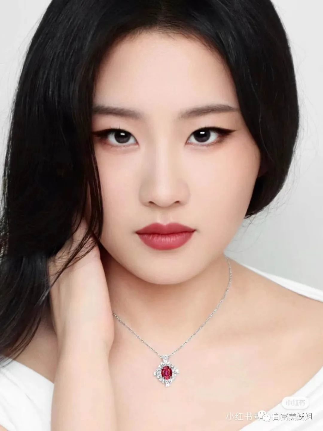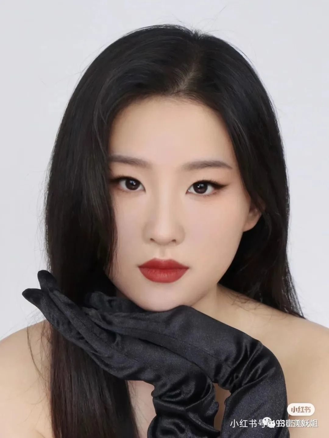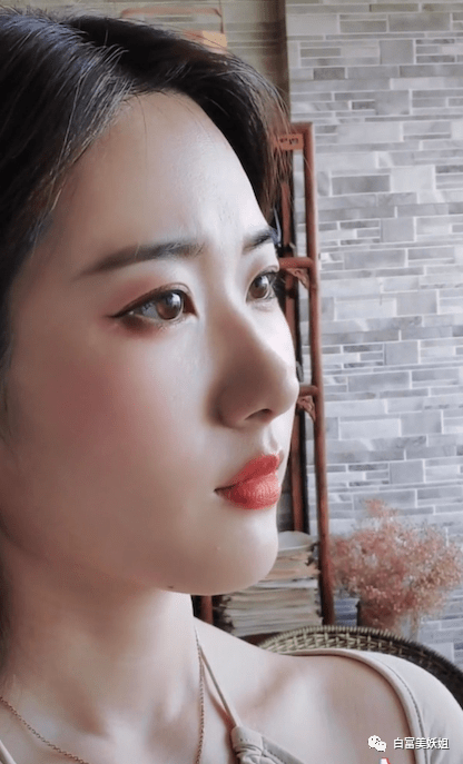 无眼影红唇妆,端庄古典,