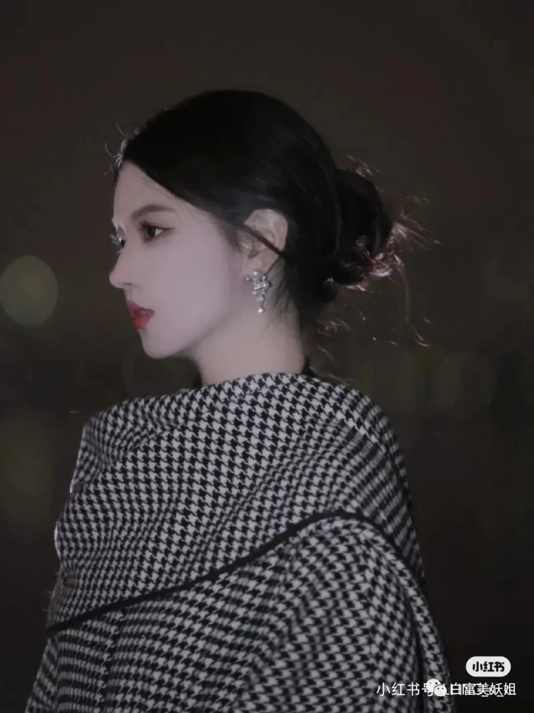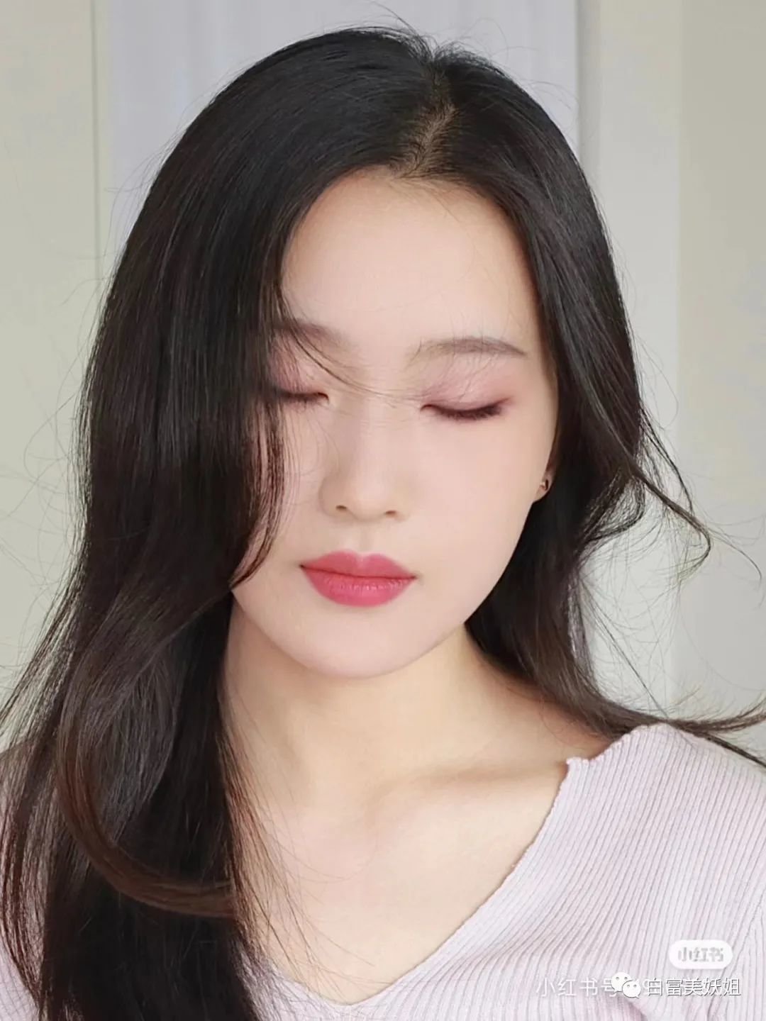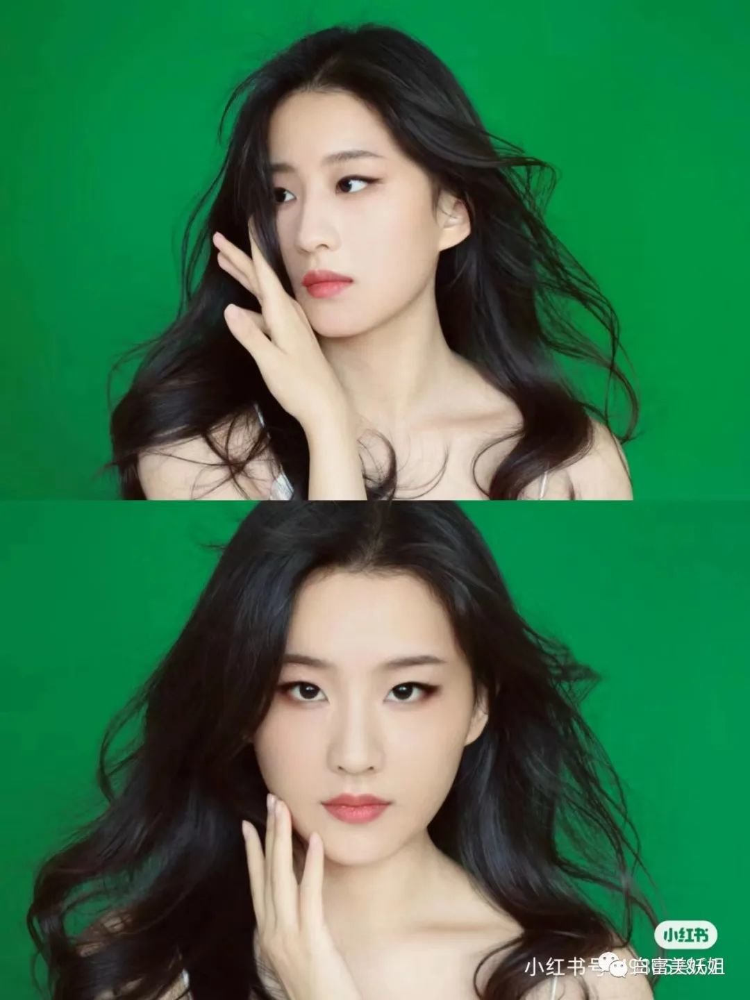 无眼影红唇妆,端庄古典,