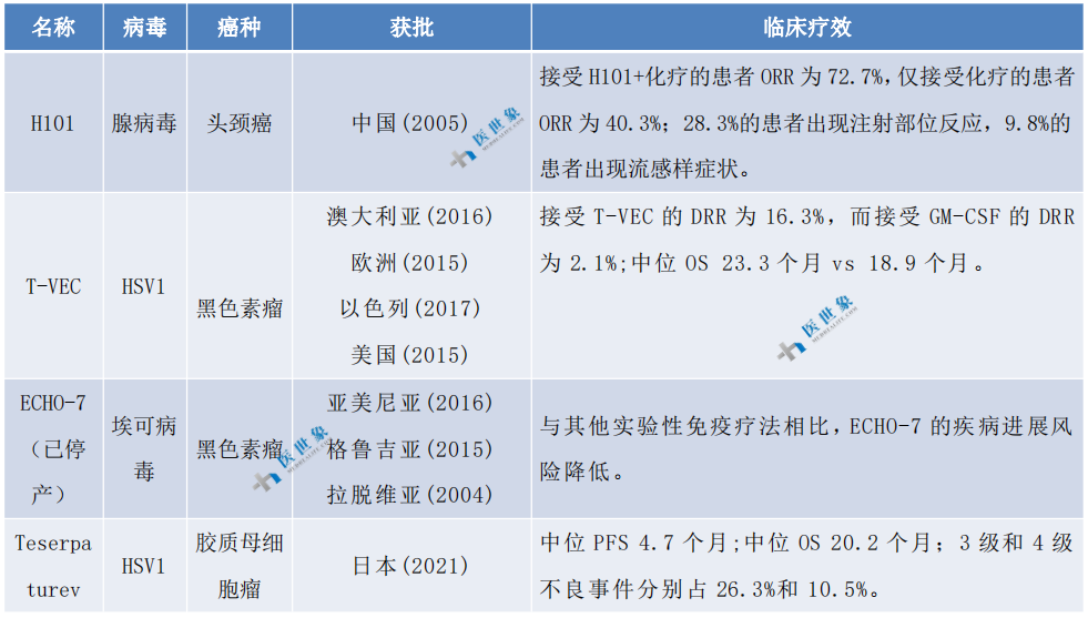 2015年,美国和欧洲批准了另一种名为Talimogene Laherparepvec(T-VEC)的工程单纯疱疹病毒(HSV-1)OV,用于治疗不可切除的转移性黑色素瘤。