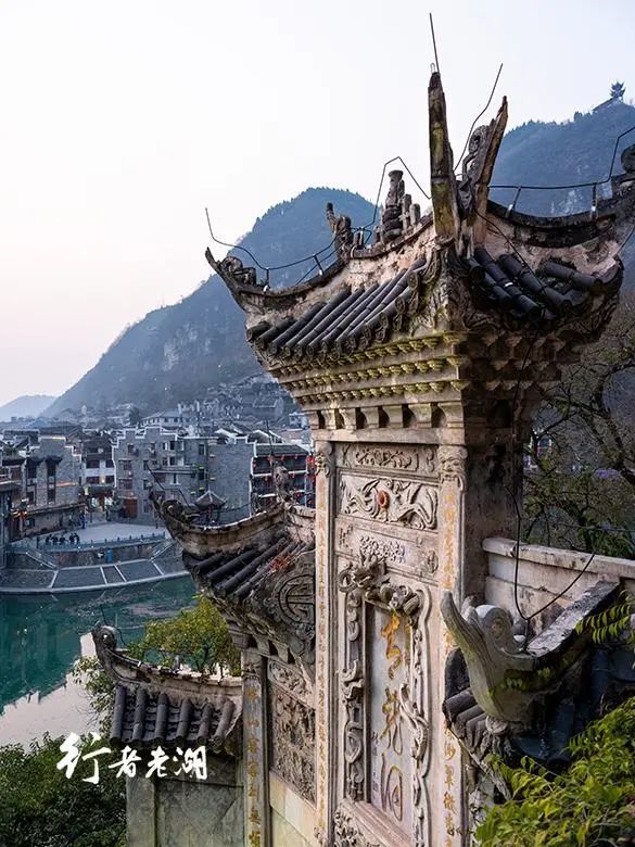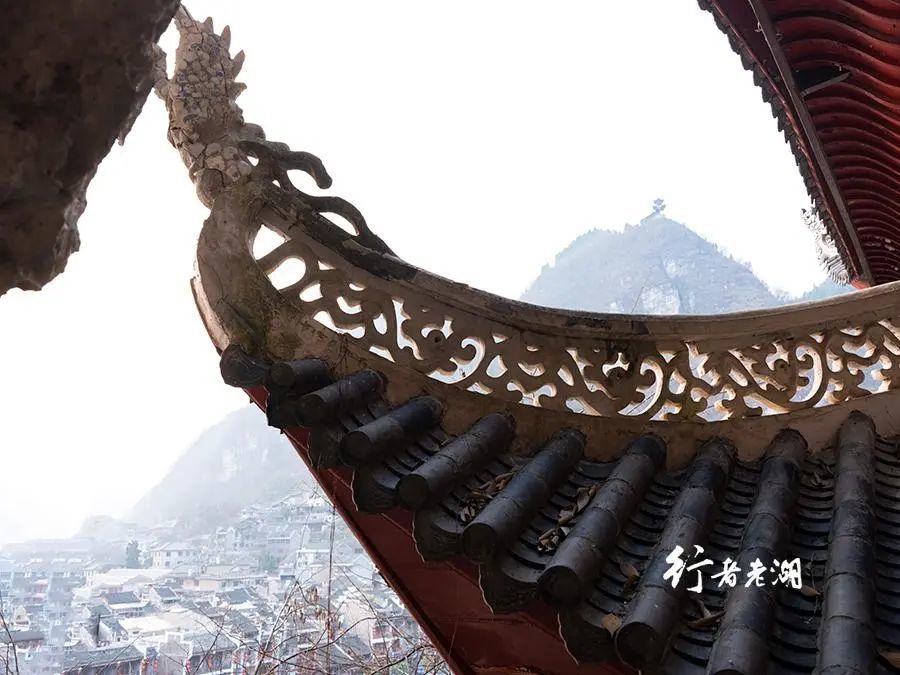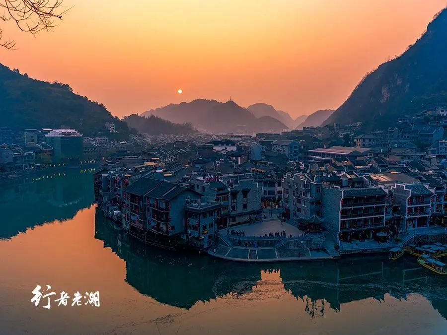 青龙洞闭馆时,也是日落时分,不舍离去。太阳在镇远古城远方群山后缓缓落下,青龙洞伫立于此,多次被毁,继而被修复,见证了630多年时空轮回。