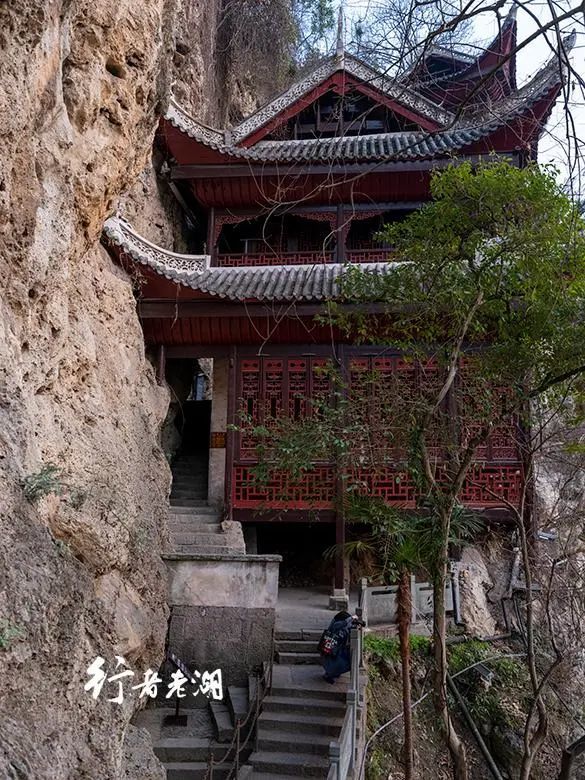 拥有悬空楼干阑式木结构骈体,半壁楼台顽强地紧贴在悬崖边缘,形成了洞与楼融为一体的精美景观,是座真正的空中楼阁,下面的世界都在脚下。