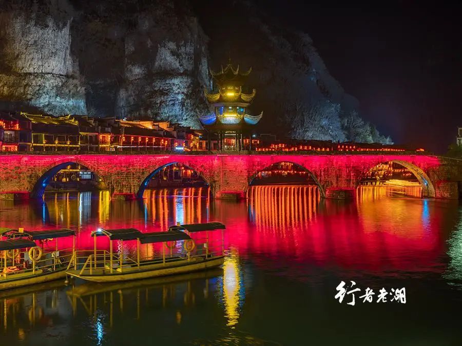 夜晚,漫步镇远古城兴隆街的舞阳河边,不少人在拍古城的夜景,一位小伙子在给他姐姐拍人像。女孩背后河对岸的幽暗背景很是特别,亭台楼阁像是商贾的后花园,又像是古寺、古牌坊,这就是镇远古城首屈一指的景 — 青龙洞。