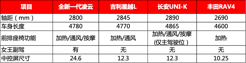 今天我们不妨对比一下全新一代凌云与几个竞品车型——吉利星越L、长安UNI-K和丰田RAV4同台竞技,究竟谁的综合实力更强。
