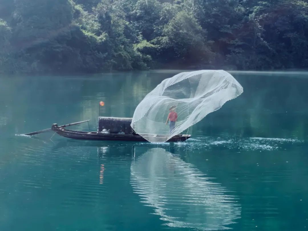 次日清晨,资兴市小东江上升起层层薄雾,若隐若现,如梦如幻。渔夫划着小舟穿行其中,时不时撒上几网。生机盎然的生态画卷,吸引游人共赴绿水青山之约。夜间花船漂流、水上移动KTV、画舫游……在东江上,感受吹拂而过的风,岁月静好,优哉游哉。