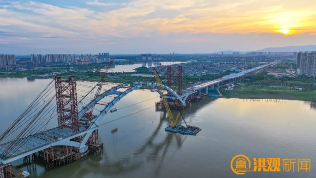 位于生米大桥以南约4公里,西起三清山大道,东至抚生西路,是一条衔接九龙湖片区与南昌县的跨江城市主干路。由市政公用集团承建,已于2021年8月30日开工建设,这里向大家通报:复兴大桥已于6月28日实现主拱合龙,预计2023年底具备主线通车条件。复兴大桥的建成可有效分流昌南地区过江交通,减轻现有生米大桥、朝阳大桥跨江通道的交通压力。