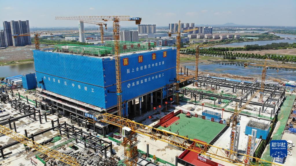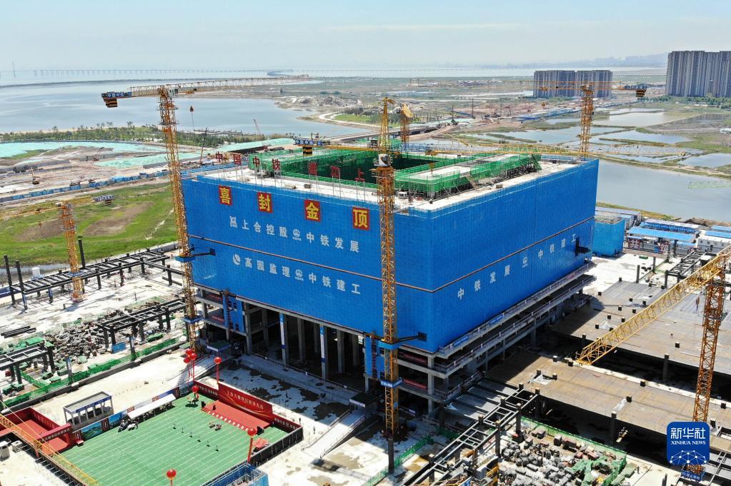 建设中的上合大厦(6月30日摄,无人机照片)。