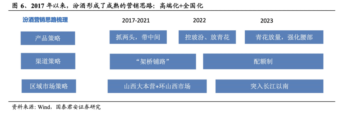 一是通过产品提价强化高端线产品的档次,同时走量的产品小幅提价增加营收。目前汾酒已经宣布将于6月20日上调主要产品出厂价,青花系列的指导价都有不同程度的上调。