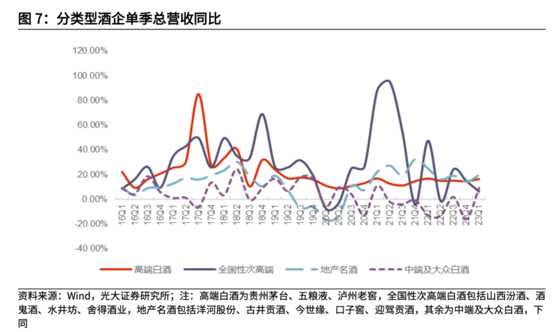 各类型酒企单季总营收同比;来源:光大证券研究所