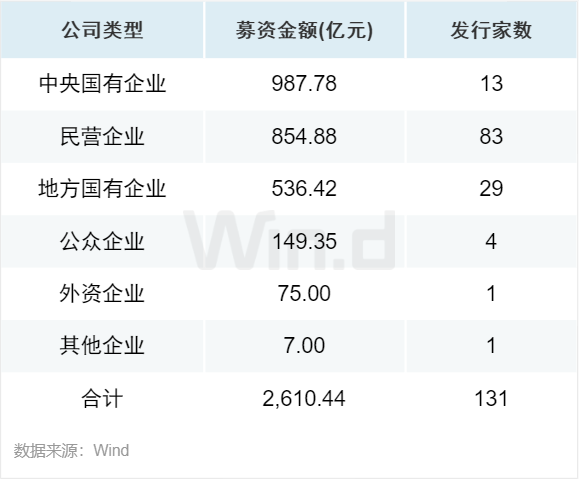 从增发企业分布来看,中央国有企业是增发募资的主体角色,募资总额为988亿元。其次为民营企业,募资总额为855亿元;地方国有企业和公众企业募资金额分别为536亿元和149亿元。募资家数方面民营企业占据绝对性份额,高达83起,占比63%。