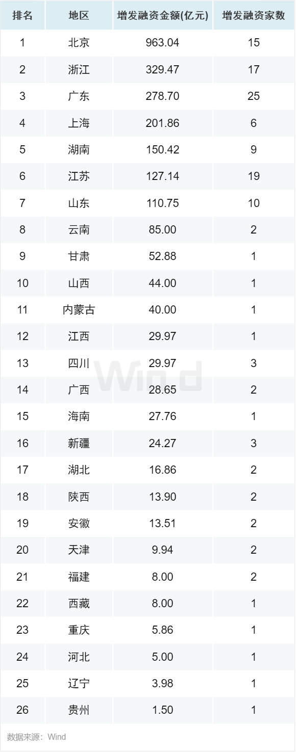 3.4增发主体地域分布