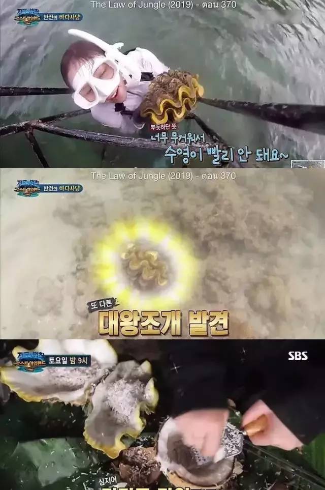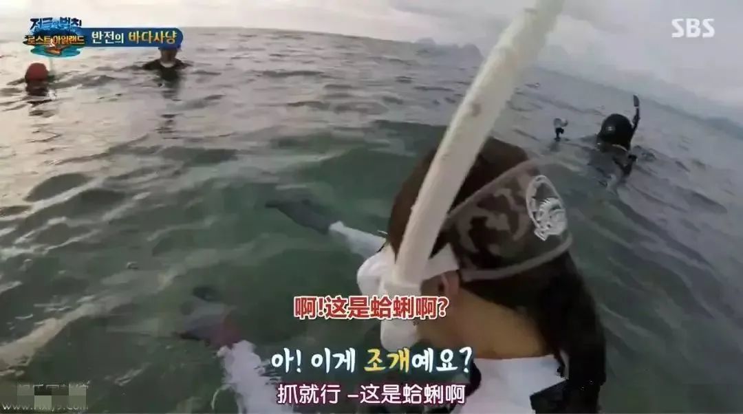 李烈音回到海面上,节目组的人说“抓就行,这是蛤蜊”。